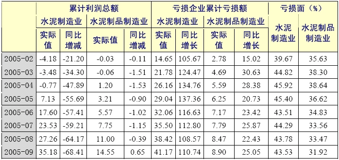 2005 年以來水泥制造業(yè)和水泥制品制造業(yè)利潤情況