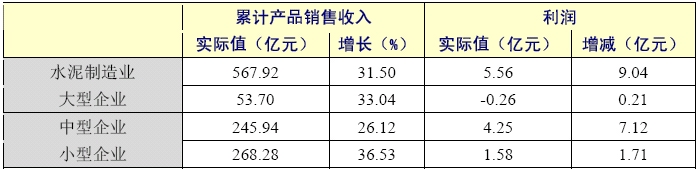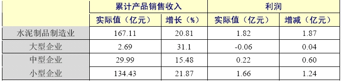 2006年1季度,水泥制造業中,大型、中型、小型企業的銷售收入增長速度都比上年同期有大幅提高。與行業平均增長率相比,中型企業增勢更為明顯,增長速度比全行業平均水平高出2.79個百分點;實現利潤方面,大型企業仍然是虧損的,但是虧損額比上年同期有所減少,中型、小型企業則由上年同期的虧損轉變為盈利。 大型企業累計產品銷售收入為53.70億元,占全行業的9.46%,同比增長33.04%,增幅比上年同期上升了25.59個百分點;實現利潤-0.26億元,比上年同期增加了0.21億元。 中型企業累計產品銷售收入為245.94億元,占全行業的43.31%,同比增長26.12%,增幅比上年同期上升了29.87個百分點;實現利潤為4.25億元,占全行業的76.41%,同比增加了7.12億元。 小型企業累計產品銷售收入為268.28億元,占全行業的47.24%,同比增長36.53%,增幅比上年同期上升了24.31個百分點;實現利潤為1.58億元,占全行業的28.35%,同比增加1.71億元。 1季度,水泥制品制造業中,大型、小型企業產品銷售同比增長高于行業平均增長率;小型企業實現利潤比上年同期大幅增長。
