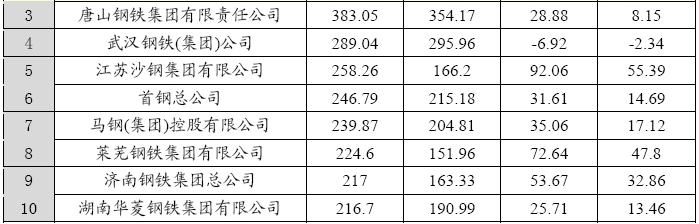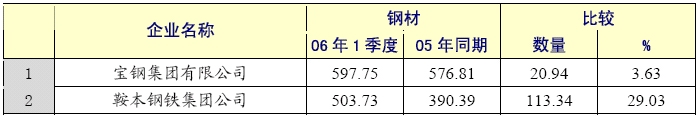 2006年一季度全國十大鋼鐵企業鋼材生產情況
