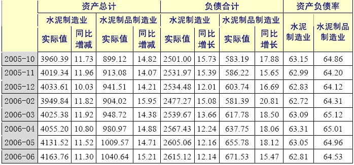 2006 年上半年以來水泥制造業和水泥制品制造業資產、負債情況