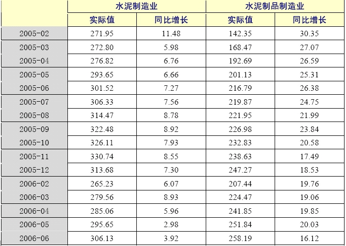 從資金使用情況看,2006年1-6月,水泥制造業的資金使用狀況總體要好于水泥制品制造業,水泥制品制造業應收帳款凈額為258.19億元,同比增長16.12%,增幅高于水泥制造業12個百分點。 2季度末,水泥制造業應收帳款增幅比上年同期下降了3.35個百分點,而水泥制品制造業應收帳款增幅比上年同期下降了10.26個百分點,說明水泥制品制造業的資金使用狀況較上年有明顯改善。