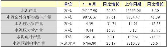 2006年1-6月,水泥累計生產54117.90萬噸,同比增長20.80%,4、5、6月份月產量更是連續突破1億噸;水泥窯外分解窯熟料生產9873.16萬噸,同比增長37.61%;水泥排水管生產4.39萬噸,同比增長-31.71%;水泥壓力管生產0.44萬噸,同比增長16.87%;水泥電桿生產205.16萬噸,同比增長6.21%;水泥預制構件生產6766.80萬立方米,同比增長20.19%。 總體來看,1-6月,水泥窯外分解窯熟料產量同比增長速度最快,水泥排水管產量比上年同期大幅下降。