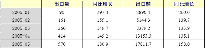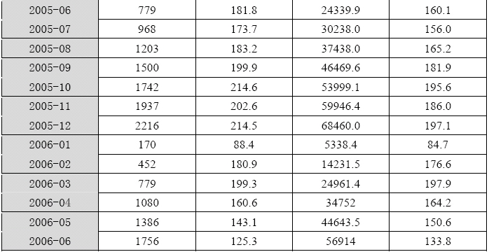 2006年1-6月,水泥出口延續2005年的良好態勢,繼續保持較高的增速。累計出口水泥1756萬噸,同比增長125.3%;出口額為56914.0萬美元,同比增長133.8%。