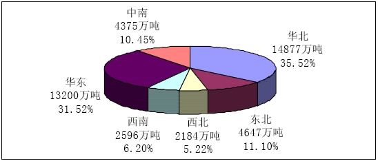 2006年全國粗鋼產量大區分布圖