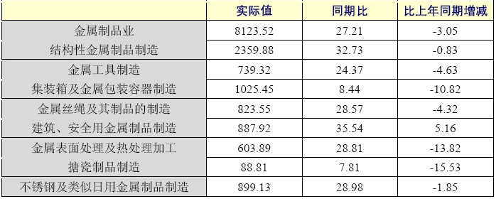 2006年,截止四季度末,金屬制品業實現產品銷售收入8123.5億元,同比增長27.21%,增幅比上年同期回落了3.05個百分點,比同期工業總產值增速低1.4個百分點,市場需求的約束性明顯增強。