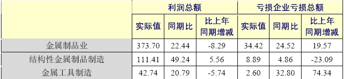 2006年,金屬制品業在產銷增幅下降的同時,行業的利潤增長速度的放緩更加明顯。截止四季度末,金屬制品業共完成利潤總額373.7億元,同比增長22.44%,增速比2005年同期下降了8.29個百分點。其中,集裝箱及金屬包裝容器制造利潤總額同比下降38.81%,影響了整個行業的盈利水平。與上年同期相比,利潤增長最好的子行業是結構性金屬制品制造,其全年利潤同比增長速度達到49.24%,這一增速比上年同期增幅高出5.56個百分點,也是整個行業中唯一一個利潤增速超過上年同期的子行業。