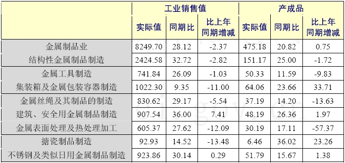 2006年金屬制品業(yè)工業(yè)銷售值增長情況