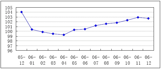 2006年四季度,金屬制品制造業的出廠價格指數出現平穩上漲。其中,10、11、12月份,金屬制品制造業工業品出廠價格指數分別為102.3、102.9、102.7。從趨勢上看,四季度是金屬制品出廠價格反彈跡象明顯,價格拐點開始出現。