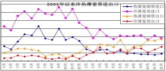 2005年以來冷熱薄寬帶進(jìn)出口走勢(shì)圖