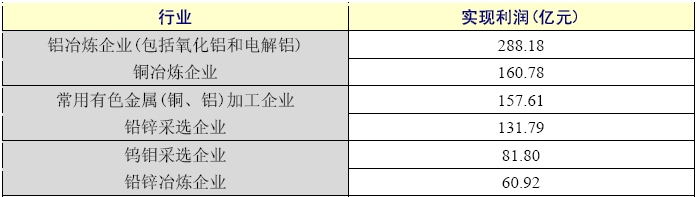 在各金屬品種中,實(shí)現(xiàn)利潤超過30億元的行業(yè)小類依次是: