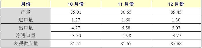2006年10月份,氧化鋁價格下跌,為電解鋁打開了巨大的盈利空間,前期閑置的電解鋁產能紛紛啟動,10月份單月產量突破了85萬噸,4季度平均月增加產量3.11%,4季度產量較3季度產量增加了8.43%。而4季度進口量比3季度下降了50.42%,出口量也有所減少,這樣4季度的月平均表觀供應量比3季度增加了11.02%。按照安泰科咨詢公司對全年鋁消費量867萬噸的預測,則月平均消費量應為72萬噸,這樣看來,4季度鋁的供應略有過剩。