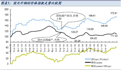 中國鋼材價格上半年整體運行較為穩定,但下半年鋼價運行壓力較大。一方面中國投產12 條熱軋生產線,國外分析師認為這將會帶來產能快速擴張,從而使2007 年下半年的價格也要大幅下跌;另一方面國家連續出臺鋼鐵出口政策后,鋼材價格在5 月底6 月初出現了明顯的下跌走勢,使2007年下半年鋼價壓力較大。