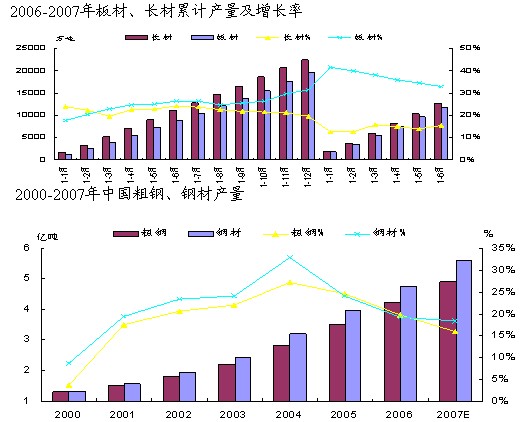 鋼鐵需求保持平穩增長,預計2007年中國粗鋼消費量4.5億噸,同比增長16%,供需基本平衡。