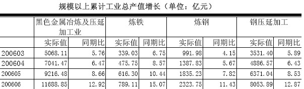 2007年一季度累計,鋼鐵行業(yè)共實現(xiàn)工業(yè)生產(chǎn)總值7073.34億元,同比增長41.45%,增速比上年同期提高35個百分點,鋼鐵行業(yè)生產(chǎn)景氣度大幅提升。其中煉鋼煉鐵兩個子行業(yè)增速在40%以上。可見,鋼鐵行業(yè)生產(chǎn)增長是全行業(yè)性質(zhì)的,同時也為未來的進一步增長提供了堅實的基礎。