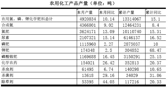 今年一季度,我國化肥總計產量1331.4萬噸,同比增長15.1%。三月份產量492.1萬噸,同比增長10.1%。一季度氨肥同比增長15.3%,其中尿素產量614.6萬噸,同比增長16.5%,三月份尿素 硝酸銨 碳素氫銨市場價個與去年同期持平。