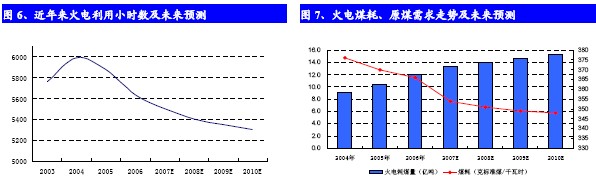 近年來火電利用小時數在2004年達到5991小時之后開始呈下降趨勢,隨著全國電力新增裝機容量的投產,這種趨勢還將保持一段時間,預計“十一五”期間新增裝機容量主要集中在2007和2008年投產,我們估計,2007年全國火電利用小時數將下降到5400左右,2010年進一步下降到5300小時左右。】