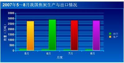 2007年5月~8月我國焦炭生產(chǎn)與出口情況