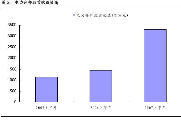 公司07 年上半年電力經營收益大幅增長,給公司利潤的增長又增添一個引擎。
