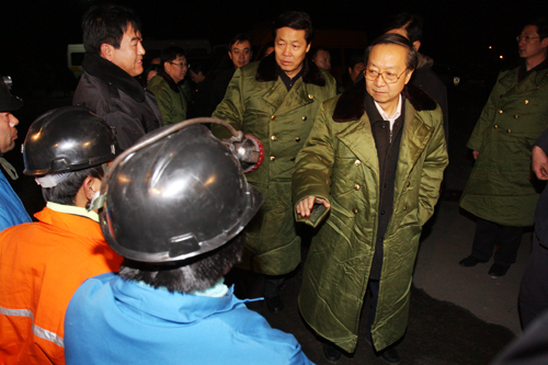 12月6日下午,國家安全生產監督管理總局局長李毅中、省委書記張寶順先后到達山西洪洞煤礦事故現場。來到現場后,李毅中立即前去查看了井口,聽取事故情況匯報,并傳達國務院領導同志批示精神,研究部署搶救工作,充實加強現場指揮部領導力量,確定由山西省分管安全生產的副省長靳善忠牽頭負責現場的搶險救援工作。