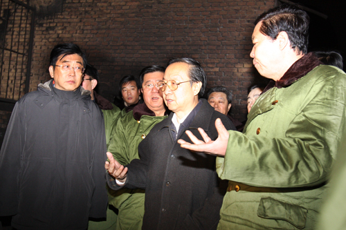 李毅中、省委書記張寶順(右)、孟學農(左)、王顯政在事故現場連夜指揮搶險救援工作