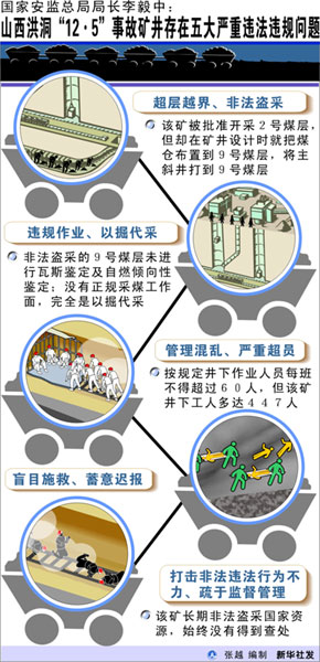 圖表:國家安監總局局長李毅中:山西洪洞“12·5”事故礦井存在五大嚴重違法違規問題 新華社發