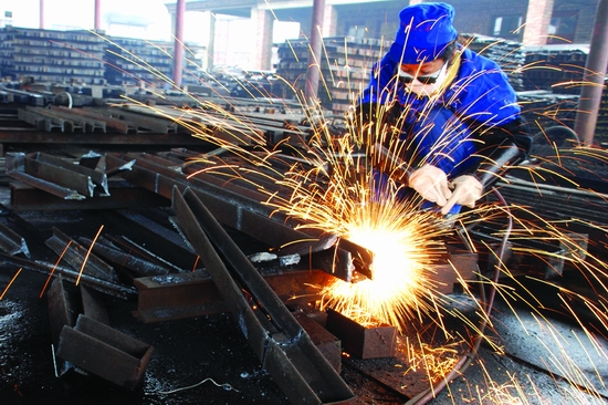 12月27日,安徽淮北市朱莊煤礦,一名工人正在焊接從百米井下回收上來的鋼材。2007年以來,朱莊煤礦積極開展回收復用、修舊利廢工作,組織礦工從百米井下回收廢舊的鋼材、設備等材料,通過維修加工后重新應用于生產中去,全年累計完成產值400多萬元。(謝正義)