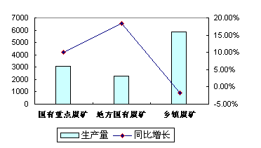在省屬煤礦中,國有重點煤礦生產(chǎn)煤炭3076.46萬噸,同比增產(chǎn)282.49萬噸,增長10.11%;地方國有煤礦生產(chǎn)煤炭2259.09萬噸,同比增產(chǎn)350.75萬噸,增長18.38%;鄉(xiāng)鎮(zhèn)煤礦生產(chǎn)煤炭5854.35萬噸,同比減產(chǎn)102.96萬噸,下降1.73%。