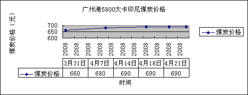 一、港口進口優質煤炭價格總體穩定,后市價格穩中看漲。4月初廣州港5800大卡印尼平倉價格在660元/噸左右,月初有20-30元的漲幅,后期總體價格穩定,具體情況看下表圖示: