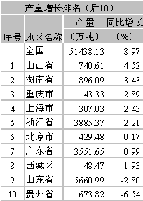 從下表中可以看出:上海及經濟發達的水泥大省廣東、山東、浙江水泥產量的增速都大大落后于全國。而東北的遼寧、黑龍江;西北的寧夏、新疆;廣西、湖南、內蒙古、江蘇、江西的產量在快速增長。