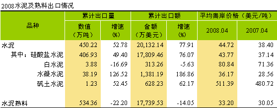 截止2008年5月底,水泥累計出口456.22萬噸,增速達52.78%。水泥熟料出口增速下降,出口534.36萬噸,增速為-22.20%。