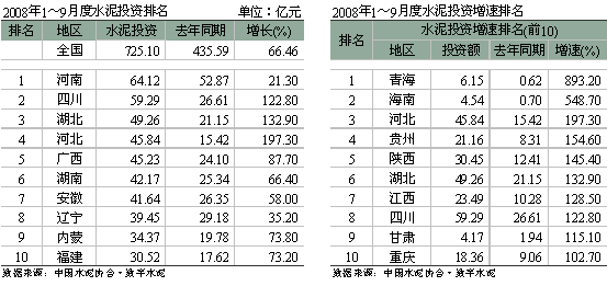 就累計數量來看,1~9月全國水泥累計完成投資725.10億元,同比增長66.46%,增速回落1.6個百分點。