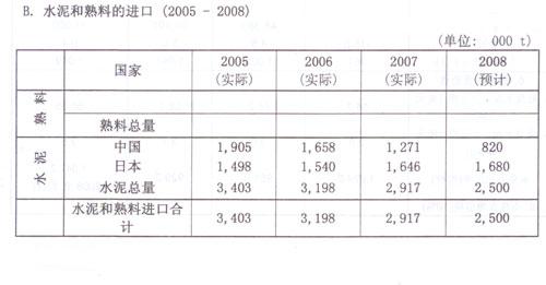 韓國水泥消費量在2008年預計可以達到5100萬噸,只比去年增長大約0.4%。盡管住宅用建筑和住房市場持續低迷,公共基礎設施的建設項目和非住宅建筑的復蘇將對水泥的需求起到推動作用。