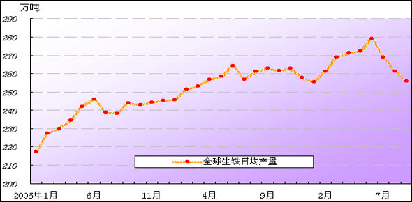 圖二 2006-2008年全球生鐵日均產(chǎn)量走勢圖