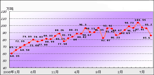 圖三 2006-2008年中國生鐵產(chǎn)量走勢圖