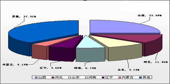 全國焦炭產(chǎn)量位居前六位的省份分別是山西、河北、山東、河南、遼寧和內(nèi)蒙古,合計總產(chǎn)量約占全國產(chǎn)量的63.59%。