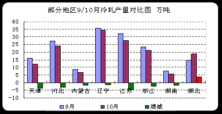 從各地生產情況來看,天津、河北、內蒙古、遼寧、江蘇、浙江以及湖南7省市產量下降較為明顯,7省市累計產量環(huán)比減少19萬噸有余,而湖北地區(qū)產量卻較9月增加了約4萬噸。