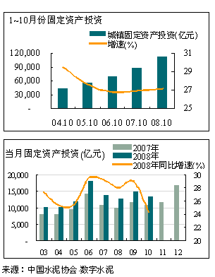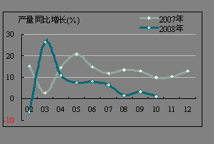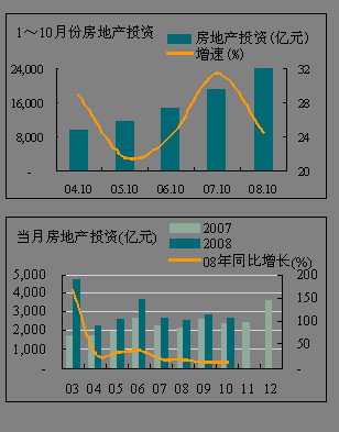 受宏觀經濟環境變動影響,今年1~10月全國累計完成投資23917.71 億元,同比增長24.62%,較2007年同期的31.40%的增速有較大回落,基本與2006年同期持平。