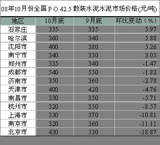 京津唐地區的北京、天津,華東江蘇、上海、浙江、江西、山東,西南四川、中南河南的價格出現了不同程度的下降,其中以北京價格下降幅度最大,主要是奧運期間水泥有價無市,交易的正常化,促使價格逐漸趨于正常水平。