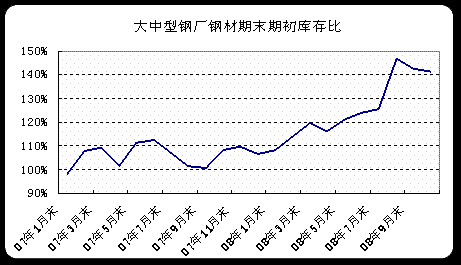 今年二季度,價格繼續高位拉漲,高價位明顯抑制了終端需求釋放和資源流通,鋼廠庫存水平逐漸上升。進入三季度以后,行情加速下跌,市場信心嚴重受挫,下游企業和代理商訂貨積極性普遍下挫,出口量銳減,廠內庫存積壓增多,8月末全國大中型企業庫存總量達到949萬噸,9、10月雖有所下降,但仍處于較高水平。