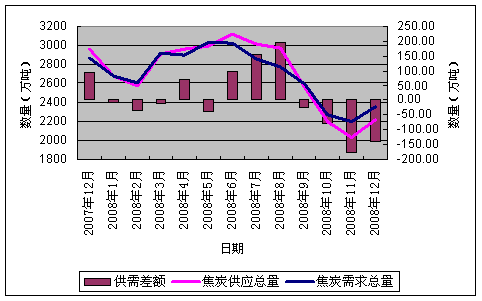 表1 2008年12月焦炭供求情況表 單位:萬噸
