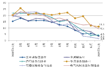 從工業(yè)主要產(chǎn)品產(chǎn)量的增減情況看,金屬切削機床、飼料加工機械、包裝專用設(shè)備、小型拖拉機、機車、冷柜、空氣調(diào)節(jié)器等均是同比回落20%以上;汽車基本上是零增長;民用鋼質(zhì)船舶雖然同比增長了66.2%,但是比2008年后兩個月相比,平均月量下降了121萬總噸,下降幅度達(dá)35.5%。即使同2008年下半年相比,平均每月下降13萬總噸,降幅5.6%。