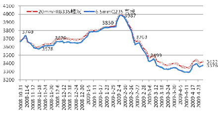 △20mm二級螺紋1月月內漲幅2.32%,2月下跌6.71%,3月跌幅減小為4.41%,4月上漲0.68%。