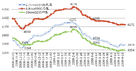 △2.75mmSS400熱卷1月月內漲幅3.37%,2月下跌11.09%,3月跌幅減小為4.93%,4月跌幅進一步減弱為2.11%。