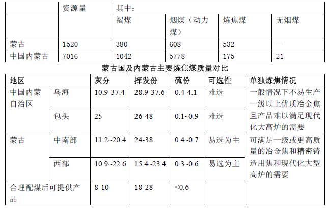 三、蒙古國煤炭資源對內蒙古的補充及其對比