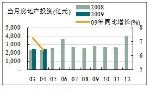 2009年房地產市場盡管仍舊低迷,但表現要好于預期,較上年出現小幅的同比上漲。4月份當月實現房地產投資2,409.69億元,同比增長6.42%,累計投資達7,289.98億元,同比增長4.9%。