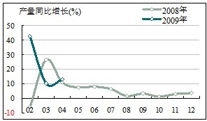 2009年1~4月發布的運行數據顯示,產業發展良好,超出了原先預期,但產能過剩問題仍為隱憂: