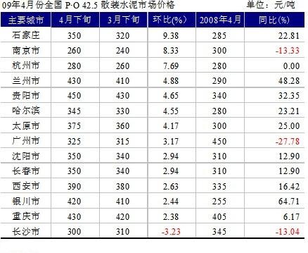 四川部分地區在4月底普遍下跌了下跌20-30元,但亞東、拉法基等本地企業并沒有跟隨調整,主要的價格調整主要在5月份。