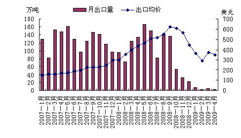 08年下半年以來,全球經濟整體下滑,鋼材需求明顯減弱,全球各大鋼廠紛紛減產,作為煉鋼重要原料的焦炭需求明顯萎縮。到目前為止每月幾萬噸的焦炭出口量與08年月平均出口127.5萬噸相比,幾乎可以忽略不計。由此可見,國際焦炭市場需求是極度低迷,再加上我國的焦炭出口高關稅,可以說,短期內焦炭出口幾乎停滯的局面難有改觀。