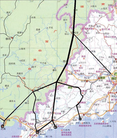 洛湛鐵路北起河南洛陽,經(jīng)過湖北、湖南到廣西岑溪后分兩個走向:向西經(jīng)玉林后沿現(xiàn)有黎湛線到湛江;向南經(jīng)信宜、高州、茂名到湛江。洛湛鐵路是國家“八縱八橫”鐵路干線之一,與京廣、京滬、京九等干線一起構(gòu)成我國縱向的鐵路網(wǎng)骨干,是我國中西部地區(qū)的重要出海通道。