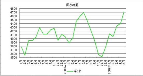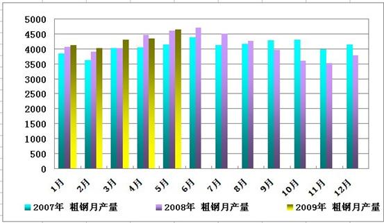 圖3:2007-2009年粗鋼月產(chǎn)量走勢圖